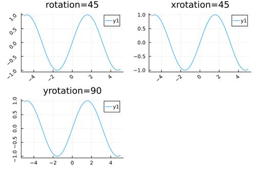 今回のPlots.jlのアトリビュート紹介(ただしGRバックエンドに限る)はrotationです。 rotationはチックラベルの回転を示します。 tickfontrotationという似たようなアトリビュートがありますが,有効でないことは 以前紹介した記事の通りです。 というか,一…